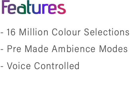 Device Comes with built in themes for changing of colours and changing brightness like COLOR LOOP which fades in and out of random colours soothingly. The Wake up and the Sleep mode which would fade the lights of over a set period of time thus slowly and dimming the light to zero and slowly bringing them up when you need to wake up.
